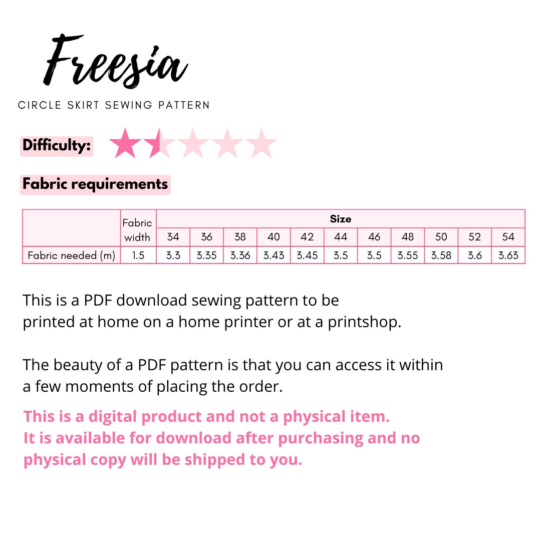 Freesia Printable Circle Skirt Pattern Three Quarter Circle Etsy